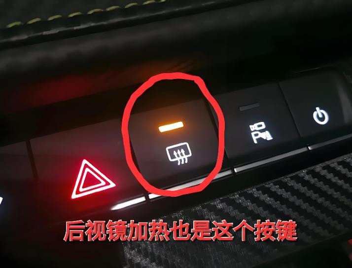 2、后挡除雾:找到方形窗户+横线的图标按键,按下后后挡风玻璃的电热丝会启动加热,不仅能除雾,还能融化玻璃上的薄霜,让车内后视镜视野立刻明朗;